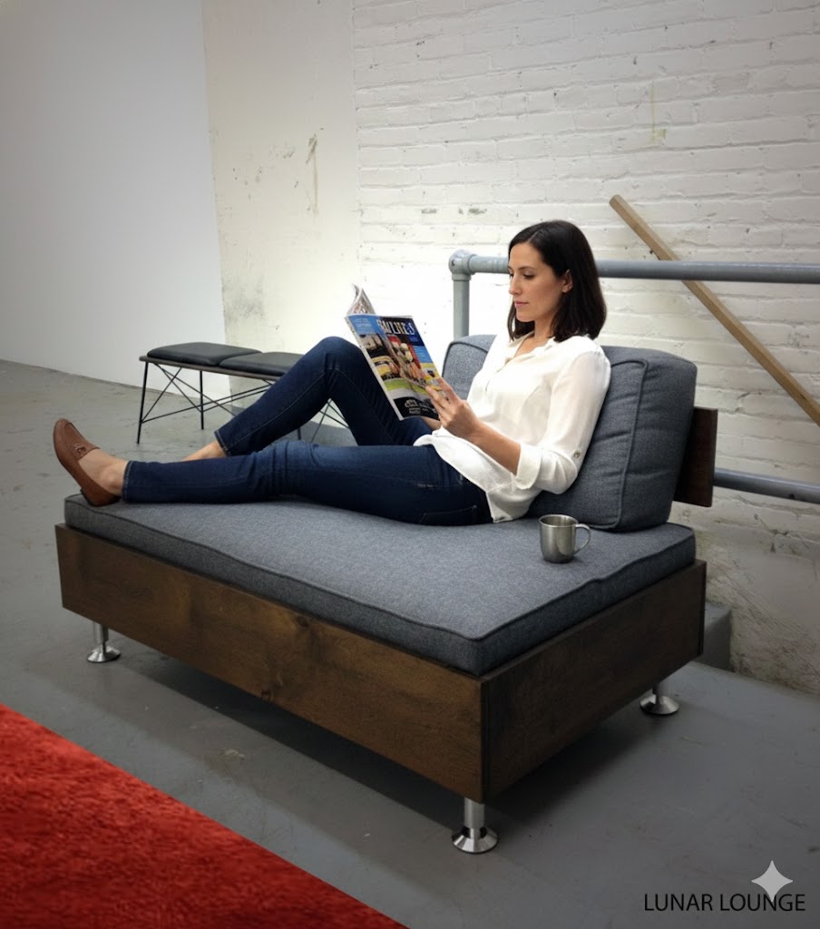 Inspired in part by the Case study day bed by George Nelson, the back rest and aluminum flat bar accents give the much needed support but allow versatility with each piece
